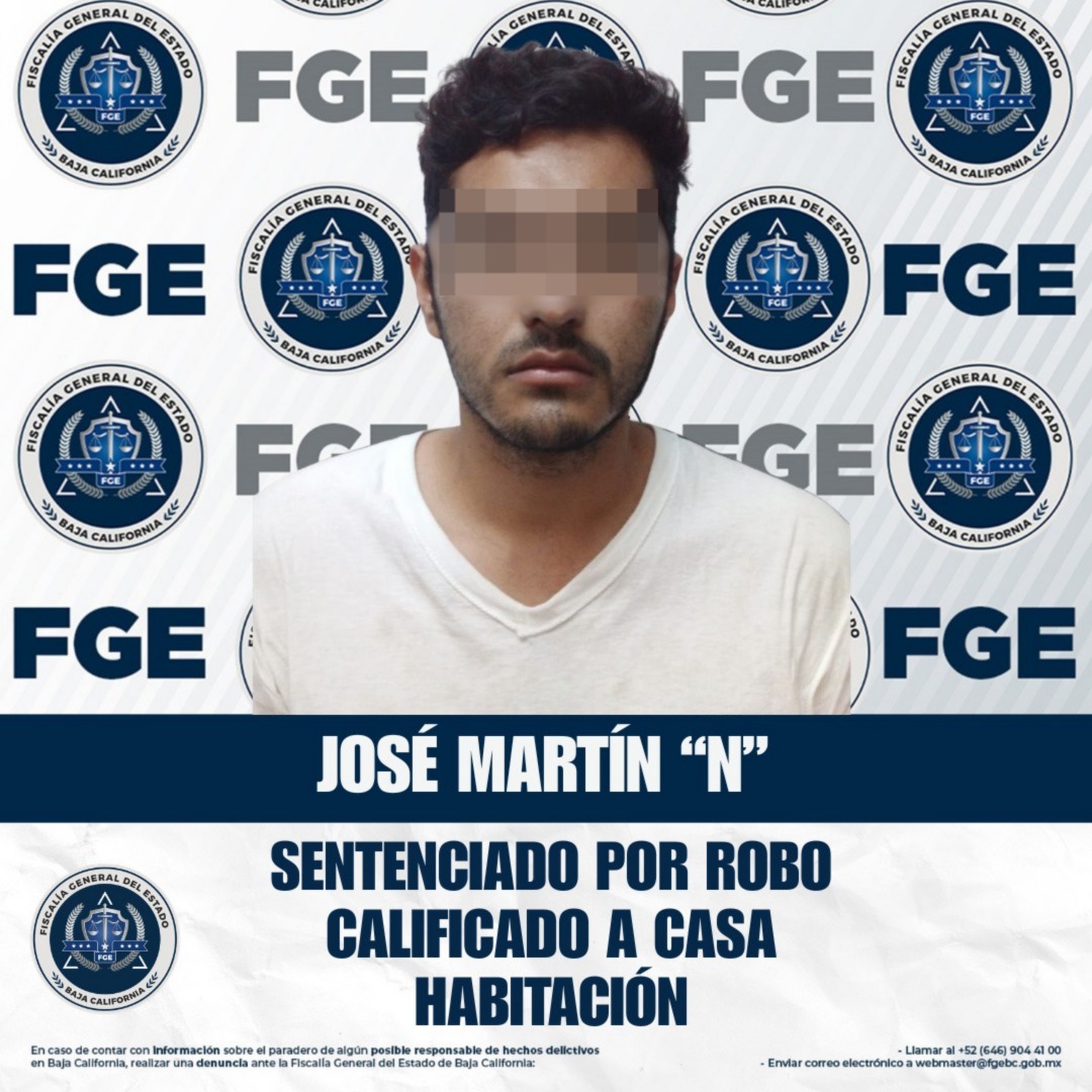 ENSENADA, BAJA CALIFORNIA. - La Fiscalía Regional de Ensenada obtuvo una sentencia condenatoria en contra de José Martín “N” por el delito de robo calificado a casa habitación.