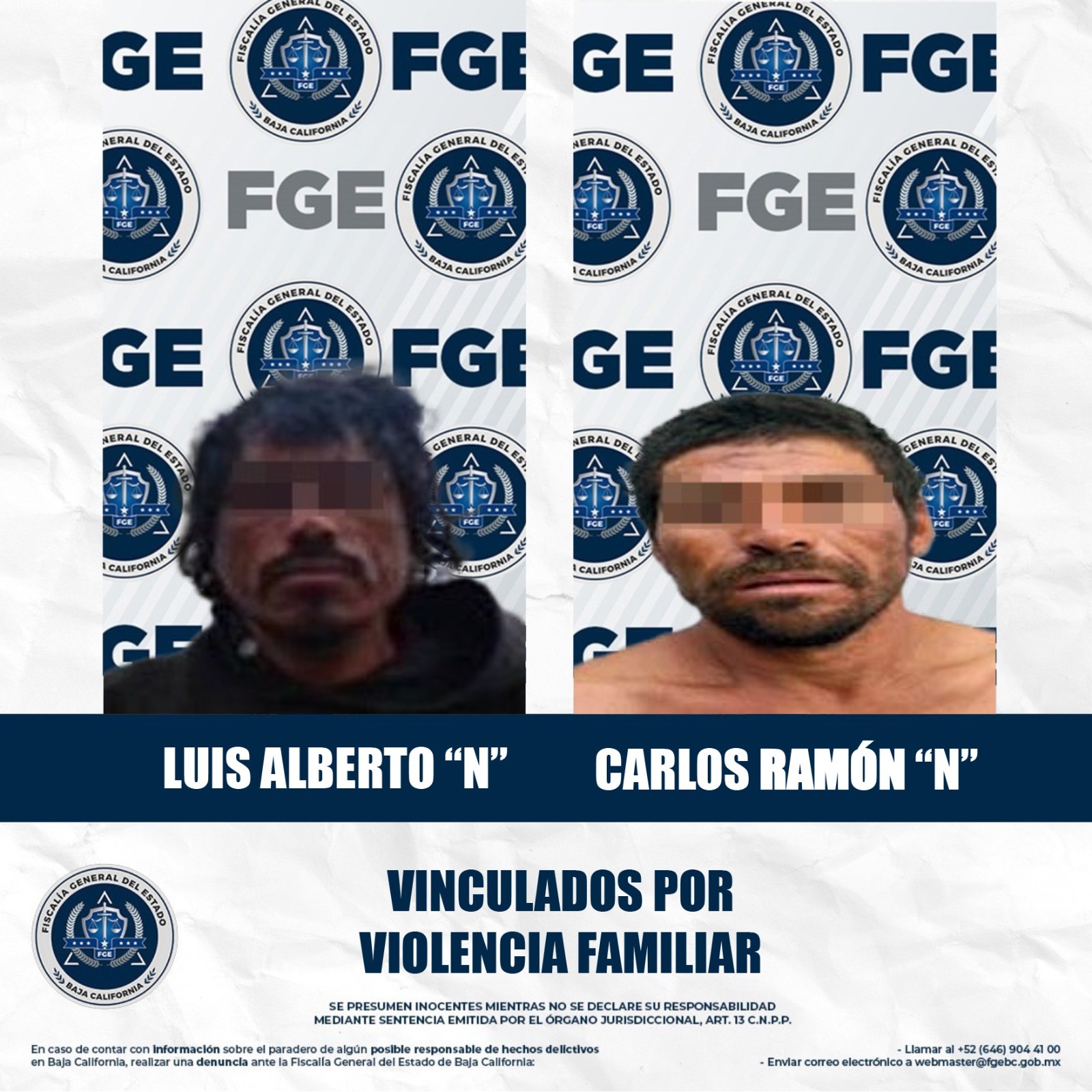 MEXICALI, BAJA CALIFORNIA. - La Fiscalía Regional de Mexicali, a través de la Unidad de Investigación de Delitos con Detenidos Poniente, obtuvo la vinculación a proceso de dos hombres imputados por el delito de violencia familiar.