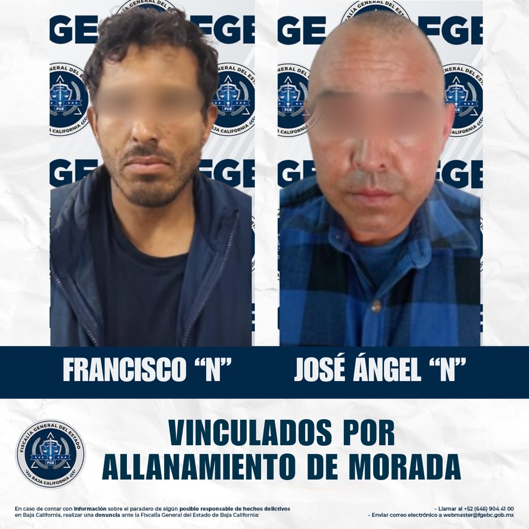 ENSENADA, BAJA CALIFORNIA. - La Fiscalía Regional de Ensenada, en coordinación con la Unidad de Investigación con Detenido, logró la vinculación a proceso de Francisco “N” y José Ángel “N” por el delito de allanamiento de morada, en hechos distintos, como resultado de la investigación realizada.