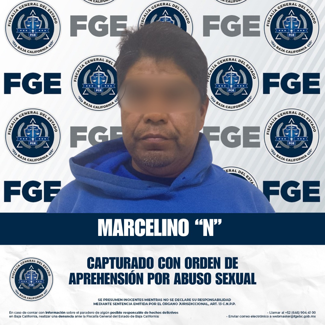SAN QUINTÍN, BAJA CALIFORNIA. - La Fiscalía General del Estado informa que elementos de la Agencia Estatal de Investigación lograron la captura de Marcelino “N”, quien contaba con una orden de aprehensión vigente por el delito de abuso sexual de persona menor de edad, emitida por autoridades del estado de Baja California Sur.