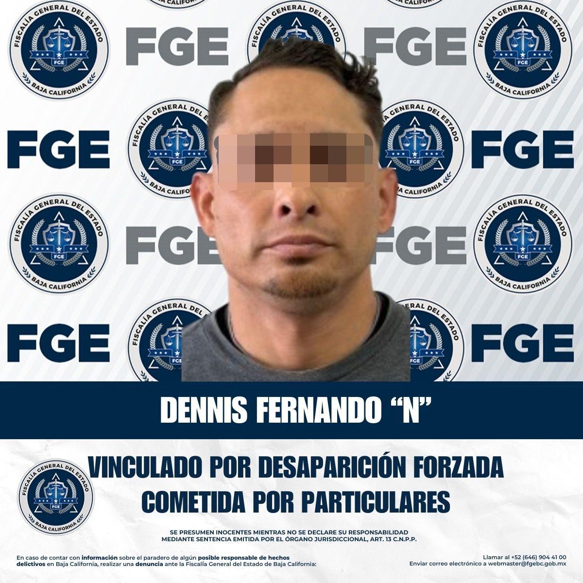 PLAYAS DE ROSARITO, BAJA CALIFORNIA - La Fiscalía Regional de Tijuana, a través de la Coordinación de la Unidad de Investigación UTMC y Homicidios Culposos de Playas de Rosarito, obtuvo la vinculación a proceso de Dennis Fernando “N” por el delito de desaparición forzada de personas cometida por particulares, en el supuesto de ocultar a la víctima.