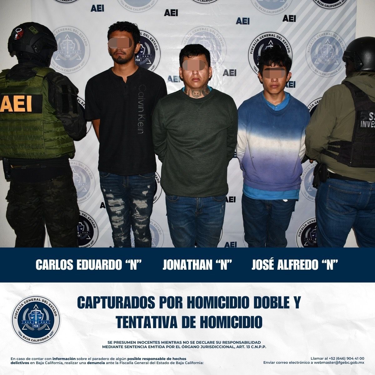 Logra FGE captura de tres sujetos por doble homicidio y tentativa de homicidio en Tijuana