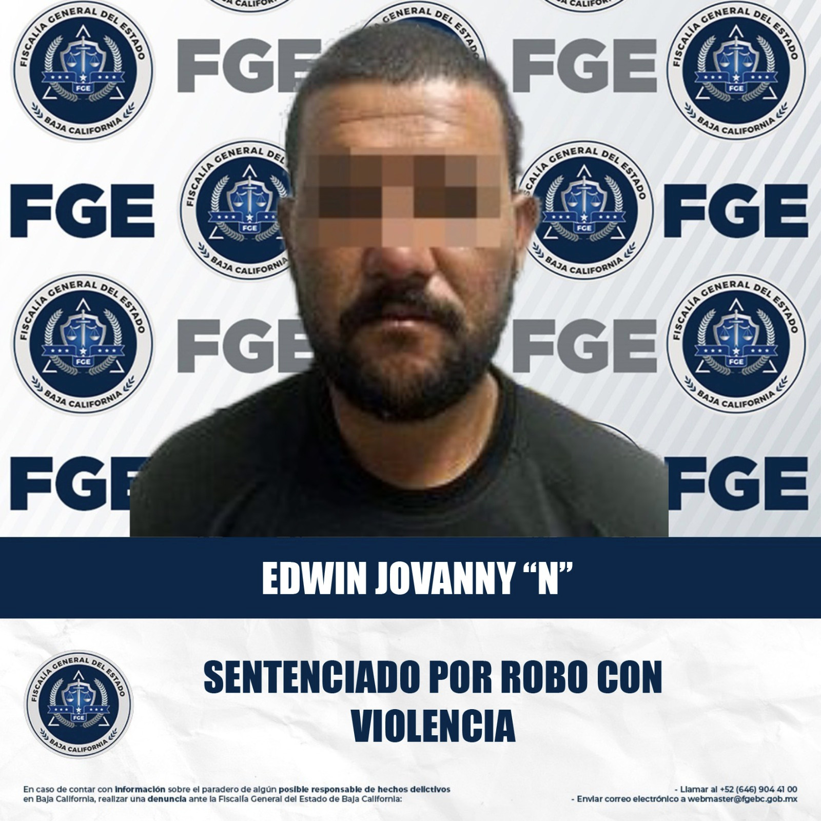 SAN FELIPE, BAJA CALIFORNIA. - La Fiscalía Regional de San Felipe, a través de la Unidad de Investigación, obtuvo mediante un procedimiento abreviado una sentencia condenatoria en contra de Edwin Jovanny “N”, penalmente responsable del delito de robo con violencia.