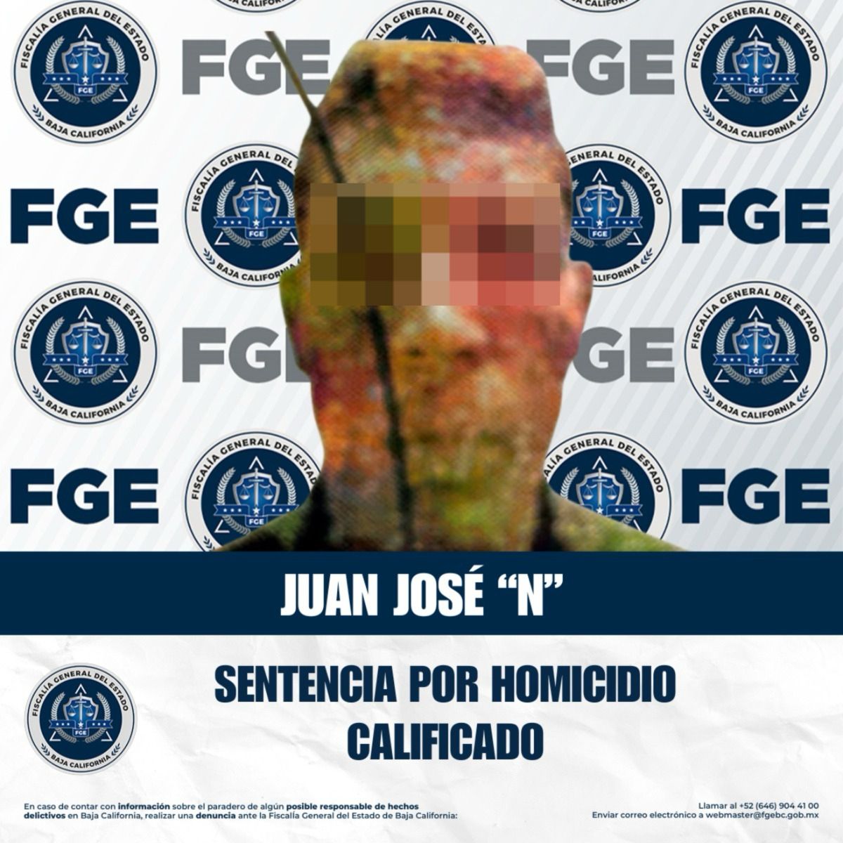 TIJUANA, BAJA CALIFORNIA. - La Fiscalía General del Estado, a través de la Fiscalía Regional de Tijuana, informa que, como resultado de las labores de investigación y la integración sólida de la carpeta correspondiente, se obtuvo una sentencia condenatoria de 24 años de prisión, en contra de Juan José “N”, alias “El Chispas” por su responsabilidad en el delito de homicidio calificado.
