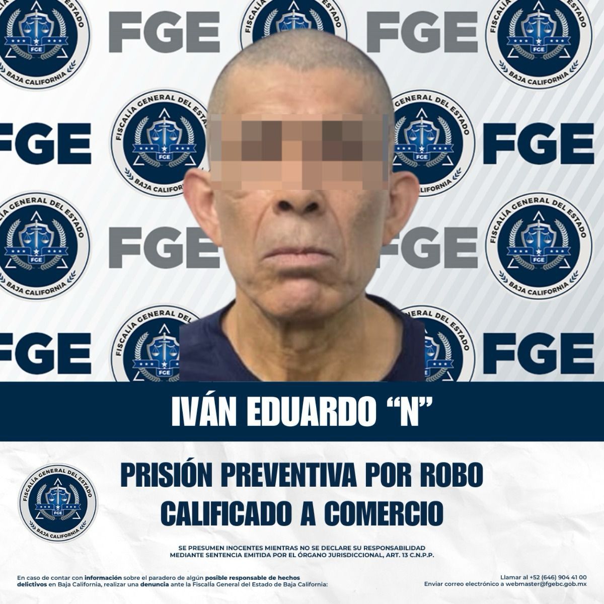 TIJUANA, BAJA CALIFORNIA. - La Fiscalía General del Estado, a través de la Fiscalía Regional de Tijuana, informa que se obtuvo la vinculación a proceso de Iván Eduardo “N”, por su presunta responsabilidad en el delito de robo calificado a establecimiento comercial abierto al público.