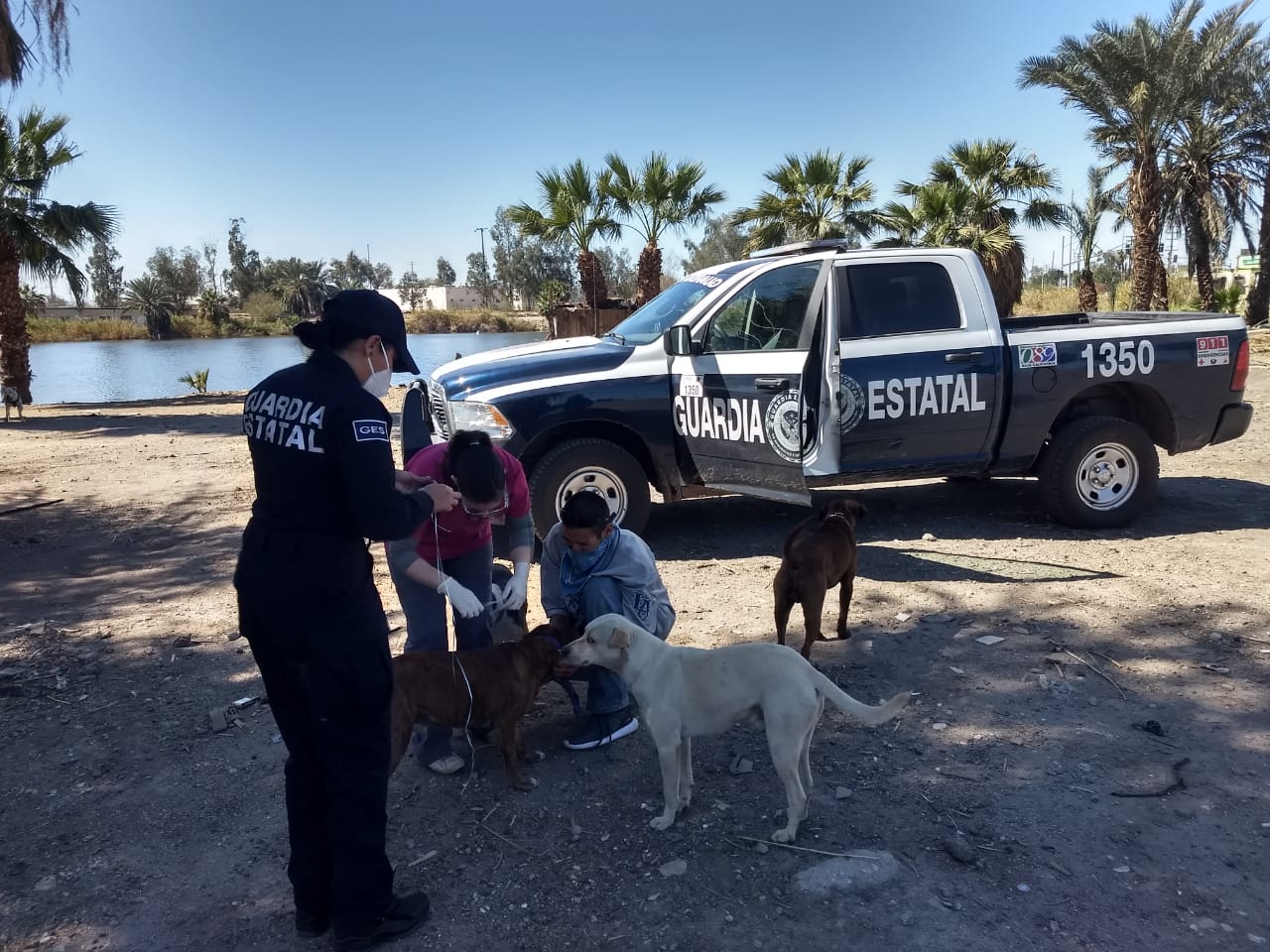 Por lo anterior, el área de Proximidad Comunitaria en coordinación con personal de la Dirección Operativas (Unidades 1350 y 1349) y la Dra. Ariana Montoya de la veterinaria Vetfriendly, apoyaron en la aplicación de vacunas contra la rabia a 14 perros que han sido abandonados en el lugar.