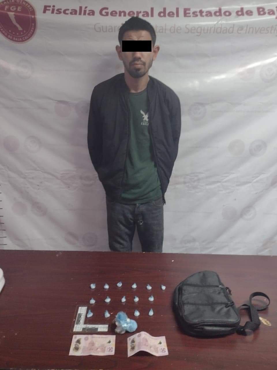 En la primera acción, agentes de la Guardia Estatal de Seguridad e Investigación (GESI), durante un recorrido de prevención y vigilancia por avenida Valle de Mexicali en el fraccionamiento Villa Bonita, intervinieron a un varón que se identificó como Eduardo Antonio “N” de 25 años.