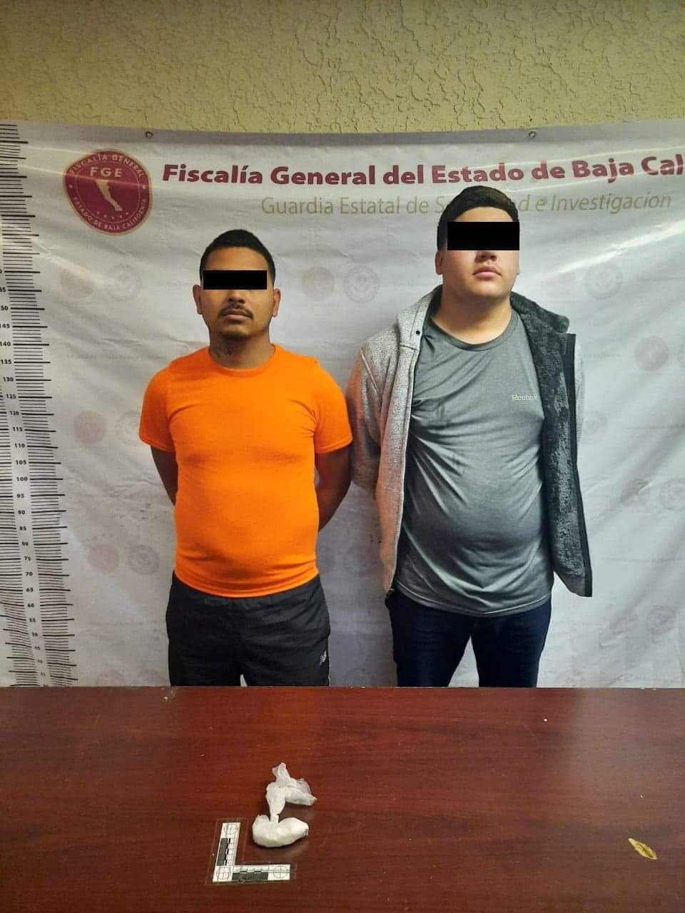 A Joan Ramón “N” y Brayan Erwin “N” fueron asegurados por delitos contra la salud, por traer un envoltorio de plástico trasparente con metanfetamina con un peso aproximado de 28 gramos, cuando circulaba a exceso de velocidad por las inmediaciones del fraccionamiento Villa Las Lomas.