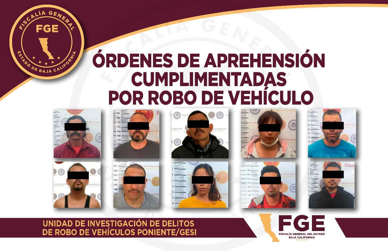 Como resultado de la estrategia de integral contra el robo de vehículo, la Fiscalía Regional de Mexicali tras desplegar un operativo simultáneo en diversos lugares, logró capturar a varios sujetos que tenían mandamientos judiciales en su contra.