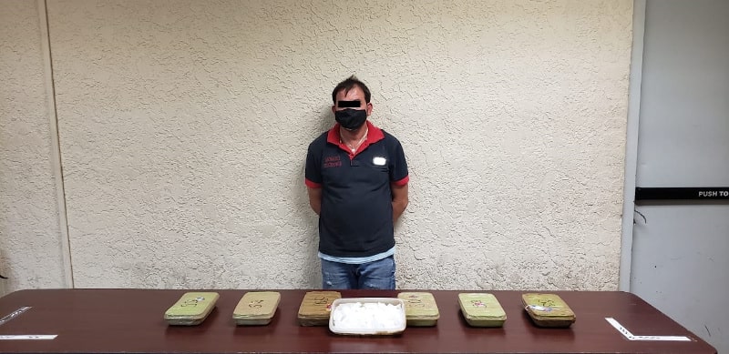 MEXICALI, BAJA CALIFORNIA, A 12 DE JULIO DE 2020.- Aproximadamente cuatro kilogramos de metanfetamina fueron decomisados por la Fiscalía General del Estado (FGE) a un delincuente.