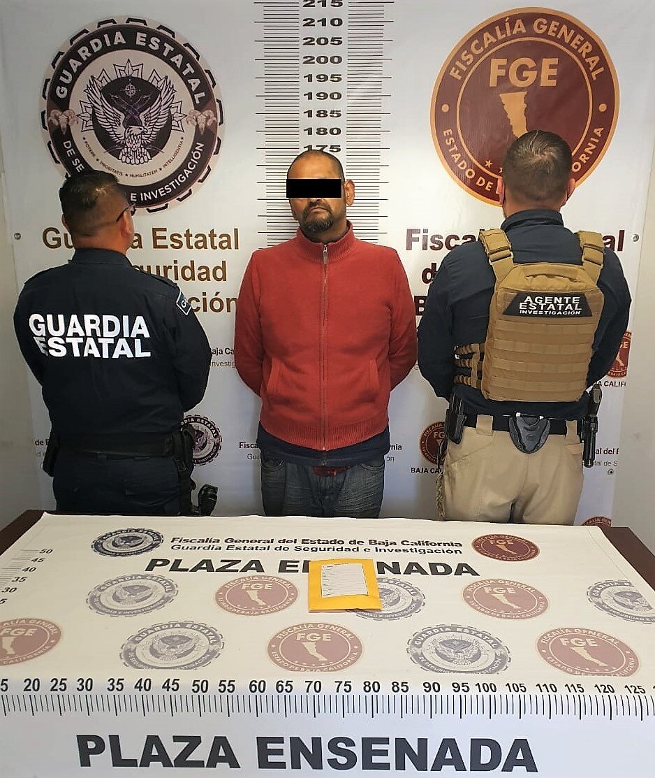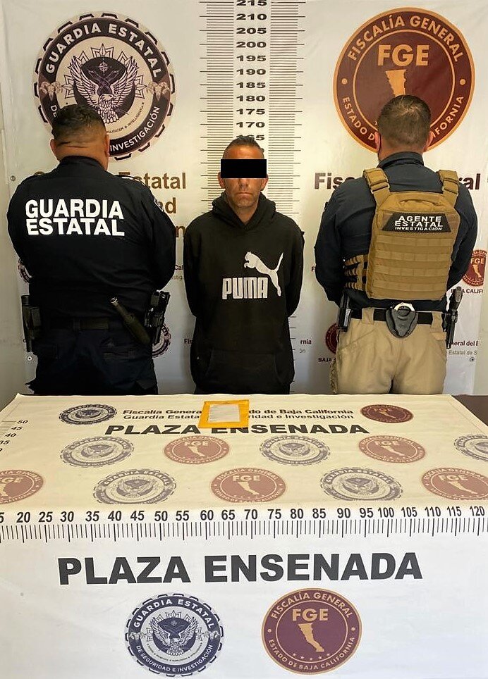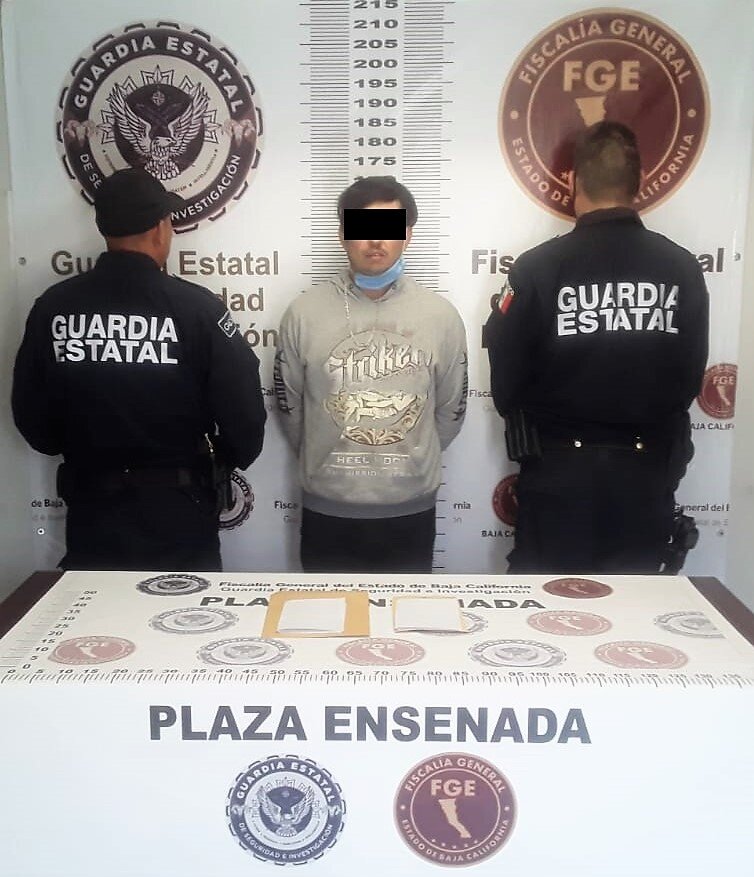 En avenida Revolución, del Valle de Guadalupe, los agentes arrestaron a Juan Gabriel “N”, de 44 años de edad, en posesión de 8 envoltorios de plástico con heroína.