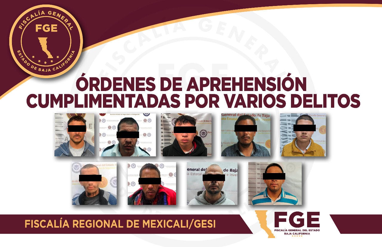 La Fiscalía General del Estado (FGE), cumplimentó nueve órdenes de aprehensión al igual número de personas por diferentes delitos, durante las últimas 48 horas.