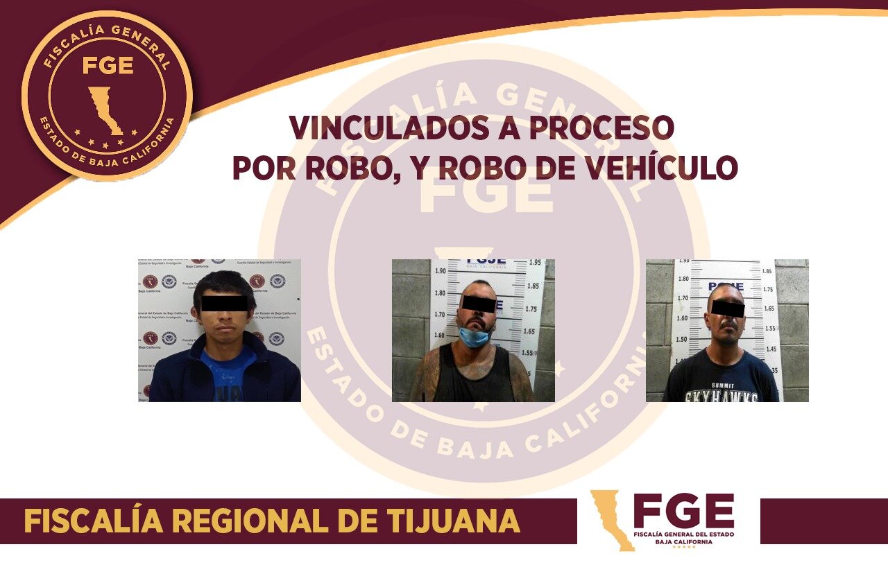 En otros tres asuntos más, la Fiscalía Regional de Tijuana, informó que quedaron en prisión preventiva Federico N., Jesús Miguel N., y José Carlos N., ellos en tres asuntos distintos, fueron vinculados a proceso, y s eles impuso la medida cautelar de prisión preventiva por los delitos que se investigan, a saber, robo equiparado de vehículo de motor.