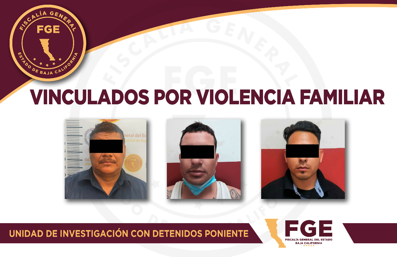 La Fiscalía Regional de Mexicali a través de la Unidad de Investigación con Detenidos Poniente, logró con base a los elementos de prueba presentados, la vinculación de tres hombres acusados de agredir a sus cónyuges.