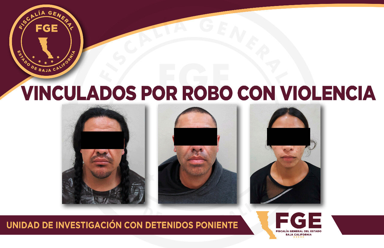 La Fiscalía Regional de Mexicali a través de la Unidad de Investigación con Detenidos Poniente, logró la vinculación a proceso y la medida cautelar de prisión preventiva en contra de dos hombres y una mujer relacionados en el robo con violencia en contra de una tienda de abarrotes de la colonia Aurora.