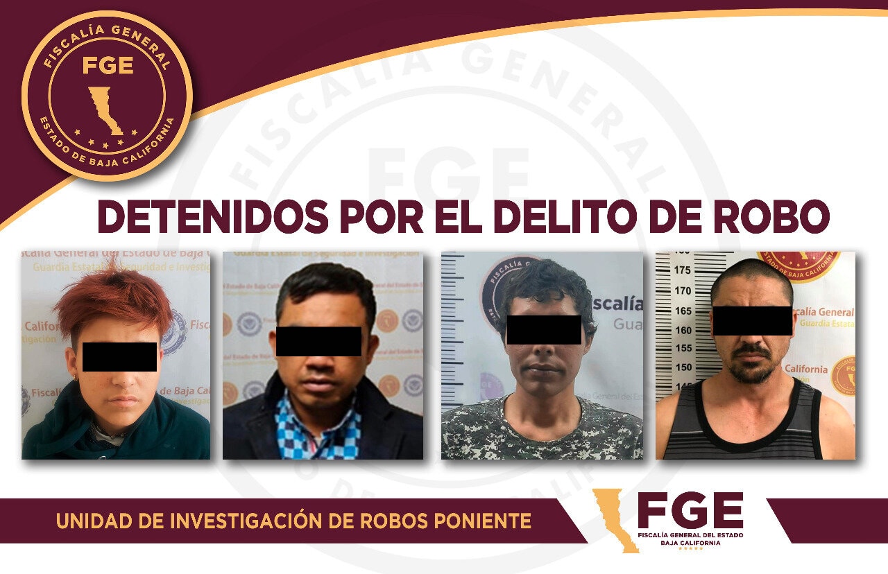 Tres hombres y una mujer relacionados en diversos robos registrados en la zona poniente de la ciudad, fueron detenidos por elementos de la Fiscalía General del Estado (FGE), al cumplimentarles orden de aprehensión.