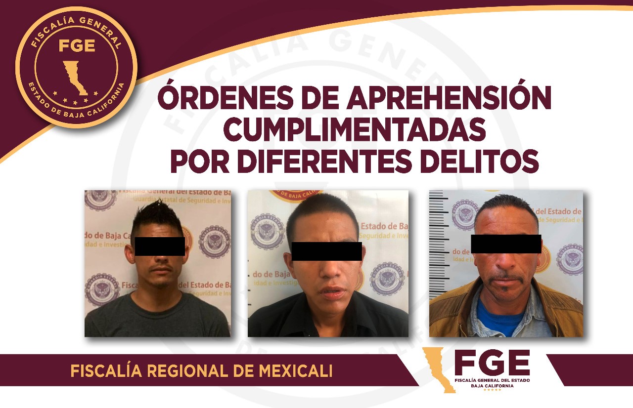 Tres personas que contaban con órdenes de aprehensión por diferentes delitos, fueron capturados en acciones por separado por elementos de la Fiscalía General del Estado (FGE).