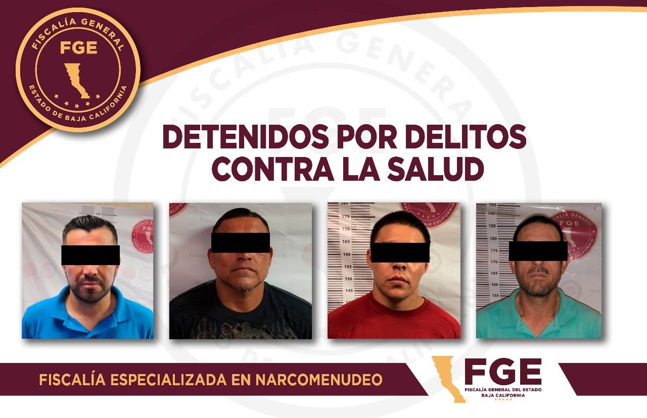 Como parte de la estrategia integral contra el narcomenudeo, elementos de la Fiscalía General del Estado (FGE), detuvieron a cuatro presuntos distribuidores de drogas, en posesión de varias dosis de metanfetamina, marihuana y heroína.