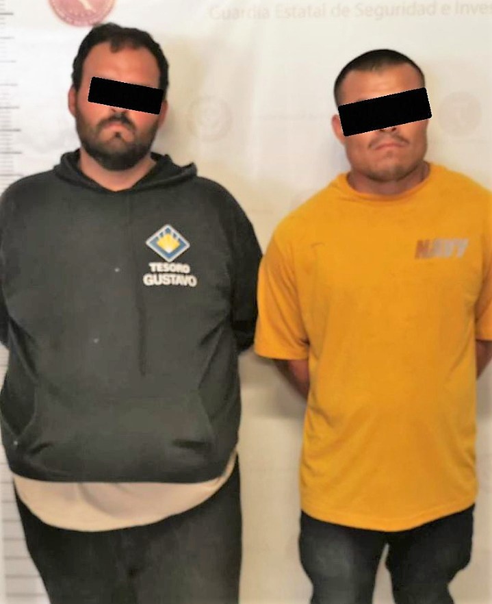 Agentes de la Fiscalía Estatal del Estado (FGE), detuvieron a dos sujetos con una bolsa de metanfetamina y un vehículo que contaba con reporte de robo.