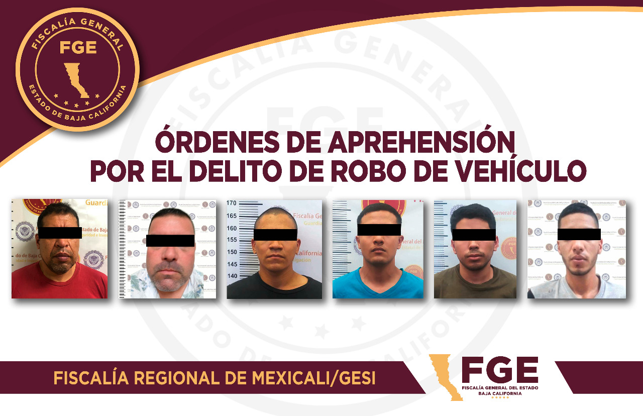 Elementos de la Fiscalía General del Estado (FGE), cumplimentaron seis órdenes de aprehensión en contra de igual número de individuos por los delitos de robo de vehículos.
