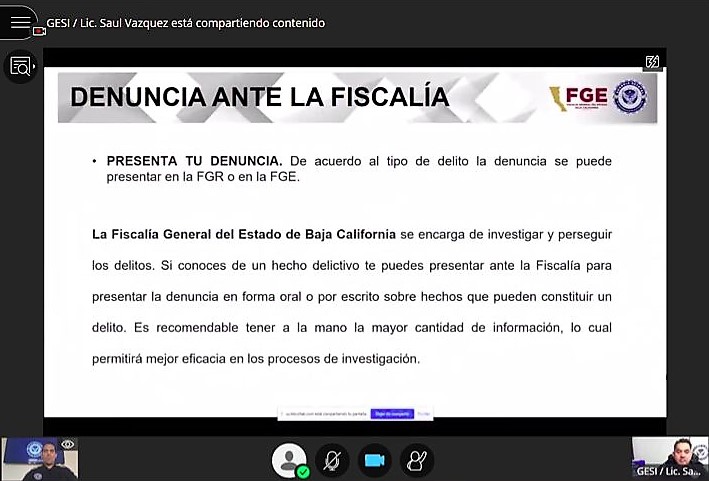 La Guardia Estatal de Seguridad e Investigación (GESI), a través del área de Proximidad Comunitaria se enlazó de manera virtual con estudiantes y personal administrativo de la Universidad Autónoma de Baja California (UABC).