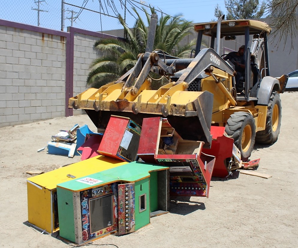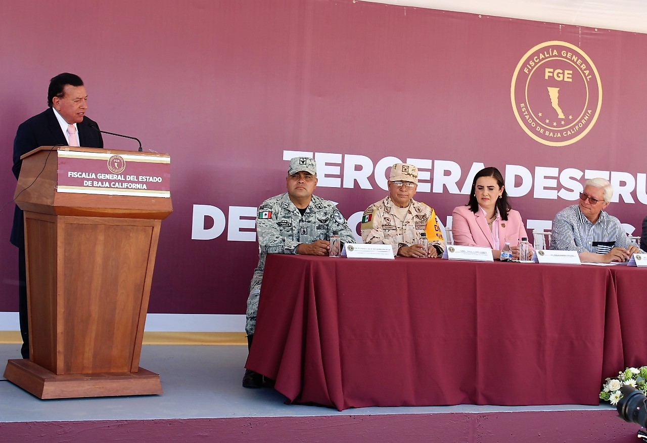 Con la presencia del gobernador de Baja California, Jaime Bonilla Valdez, se realizó la tercera destrucción de máquinas tragamonedas decomisadas por la Fiscalía General del Estado (FGE), institución que encabeza el licenciado Juan Guillermo Ruiz Hernández.