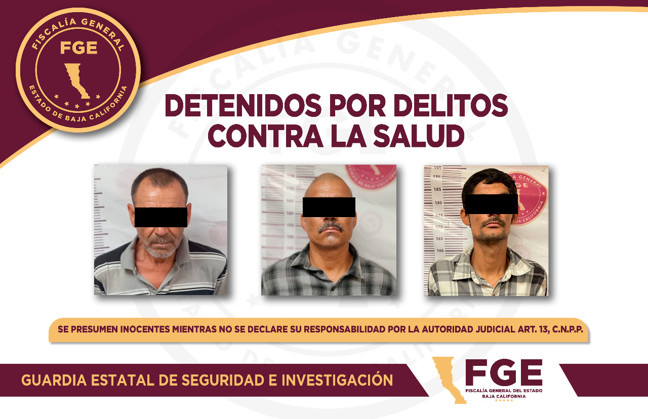 Como parte de la estrategia integral contra el narcomenudeo, elementos de la Fiscalía General del Estado (FGE), detuvieron a tres sujetos presuntos distribuidores de drogas, en posesión de varias dosis de metanfetamina, durante acciones por separado.
