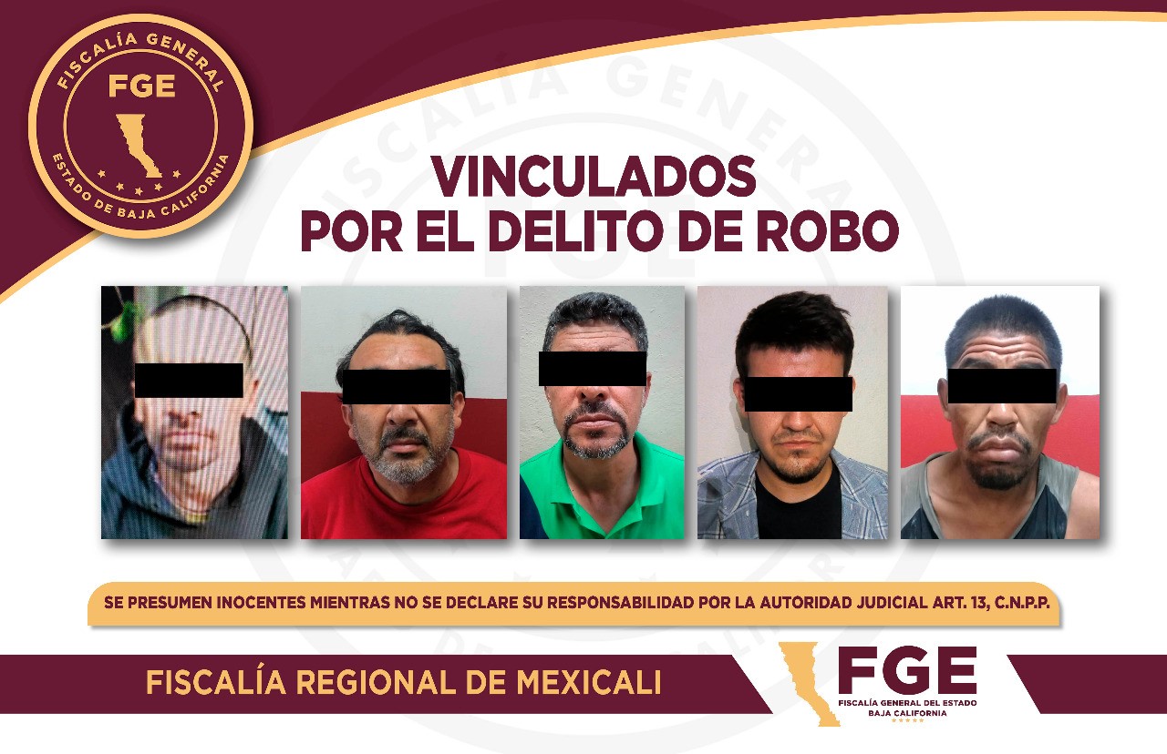 La Fiscalía Regional de Mexicali a obtuvo que fueran vinculados a proceso penal, cinco imputados por delitos relacionados con robo, en casos diversos.