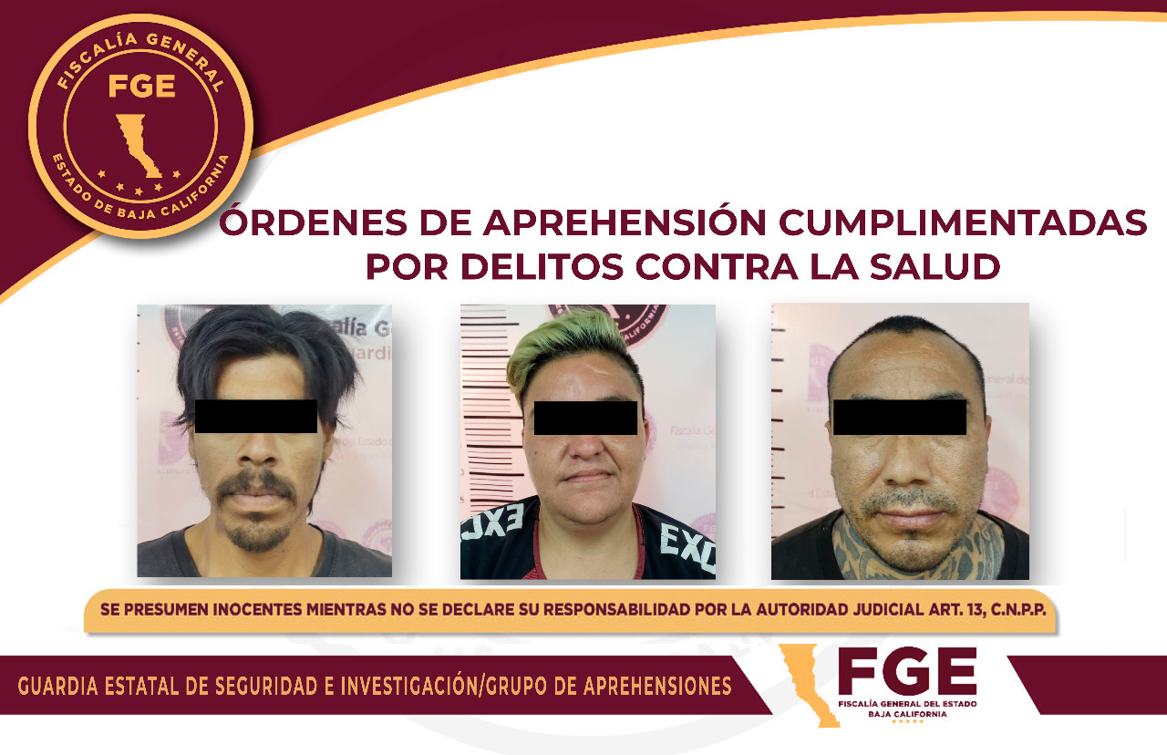 Como parte de la estrategia integral contra el narcomenudeo, elementos de la Fiscalía General del Estado (FGE), cumplimentaron tres órdenes de aprehensión por delitos Contra la Salud.