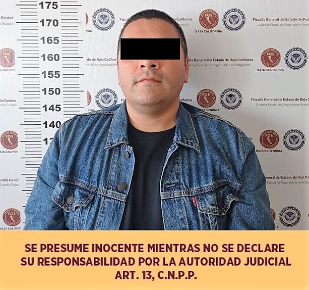 Policías de la Agencia Estatal de Investigación (AIE) arrestaron a este individuo y le cumplimentaron la orden de aprehensión por los delitos antes referidos, 15 de junio del presente año, en Ensenada.