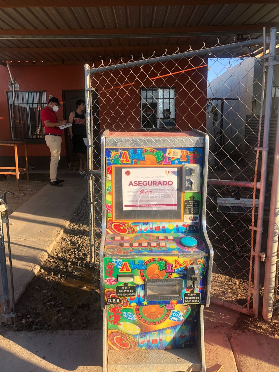 Al realizar la primera diligencia judicial en una vivienda ubicada en la avenida General Martin Carrera de la colonia Pedro Moreno, los elementos investigadores localizaron dos máquinas tragamonedas.