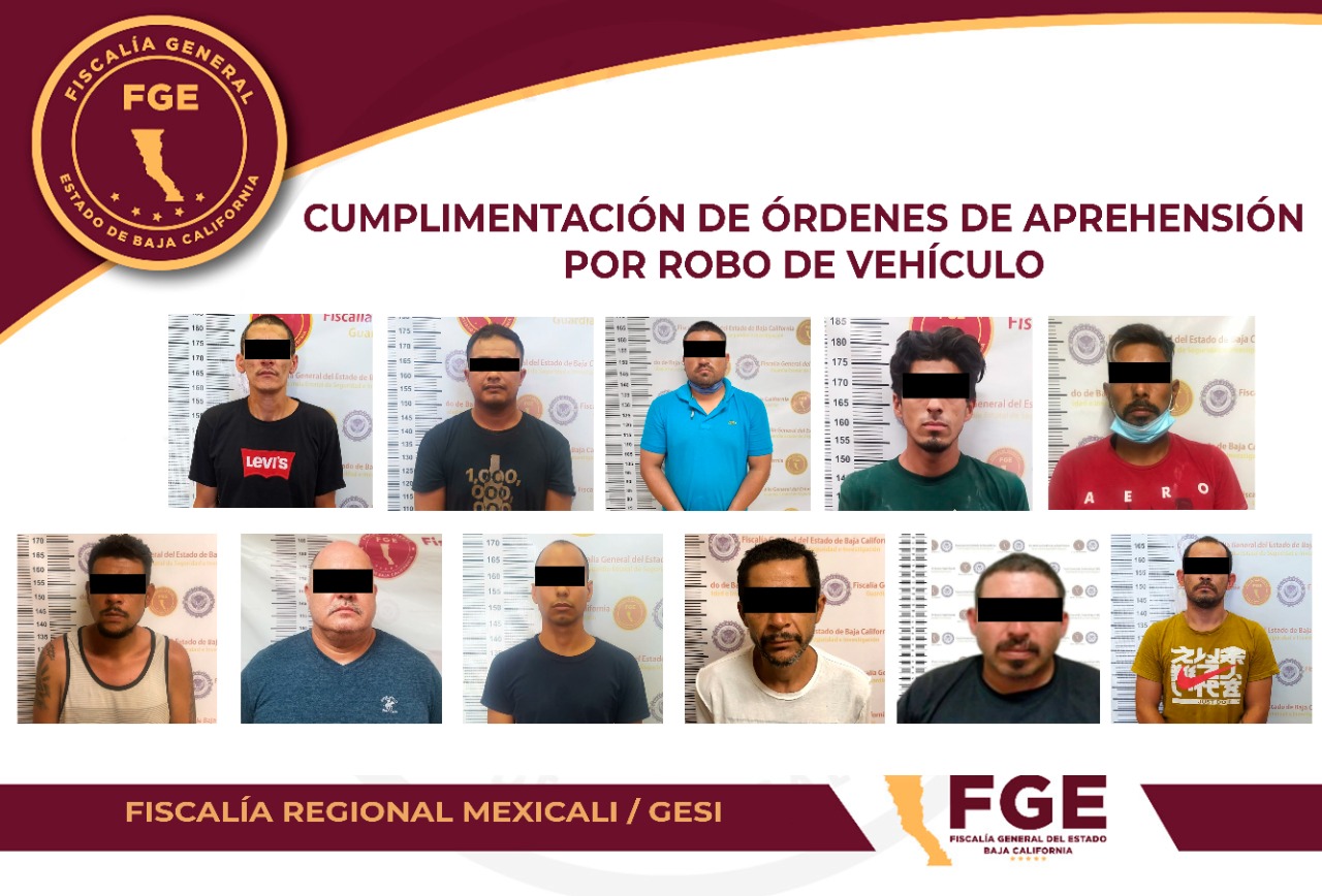 Elemento de la Fiscalía Regional de Mexicali cumplimentaron 11 órdenes de aprehensión por el delito de robo de vehículos, durante un operativo de prevención realizado en diferentes puntos de la ciudad y valle.