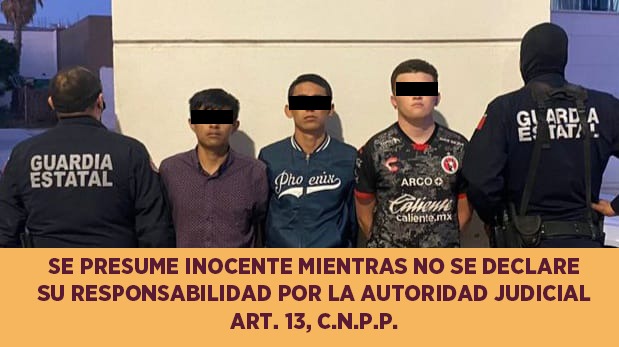 Durante recorrido de prevención y vigilancia sobre la calle Monte Líbano de la colonia Lomas del Conjunto, los oficiales intervinieron a tres individuos que mostraron una actitud sospechosa a la presencia de los elementos estatales.
