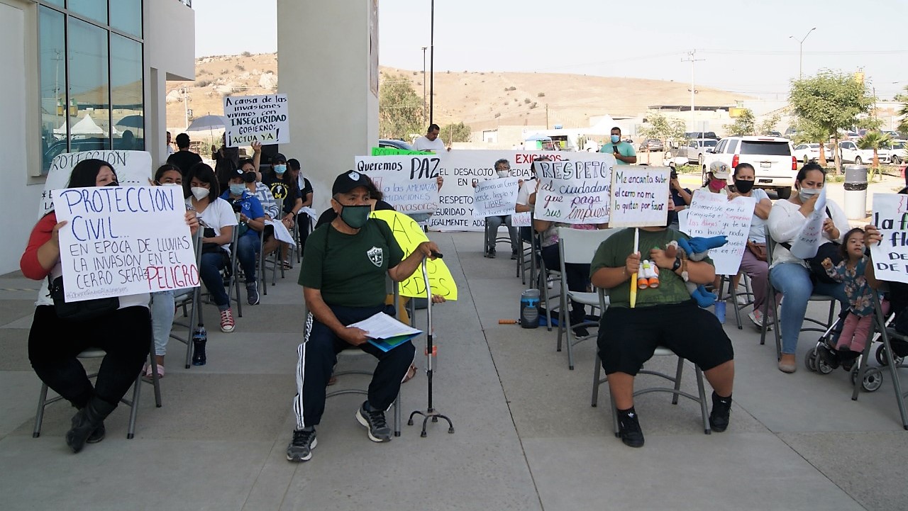 Al recibir el Gobernador a los manifestantes en la explanada del Nuevo Centro de Gobierno, estos le mostraron su preocupación por la reciente invasión de terrenos en las faldas del Cerro de las Abejas, del cual son vecinos.