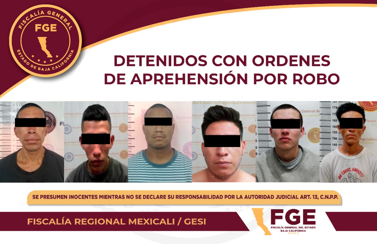 Seis hombres relacionados en delitos de robos en todas sus modalidades, fueron detenidos por elementos de la Fiscalía General del Estado (FGE), al cumplimentarles orden de aprehensión.