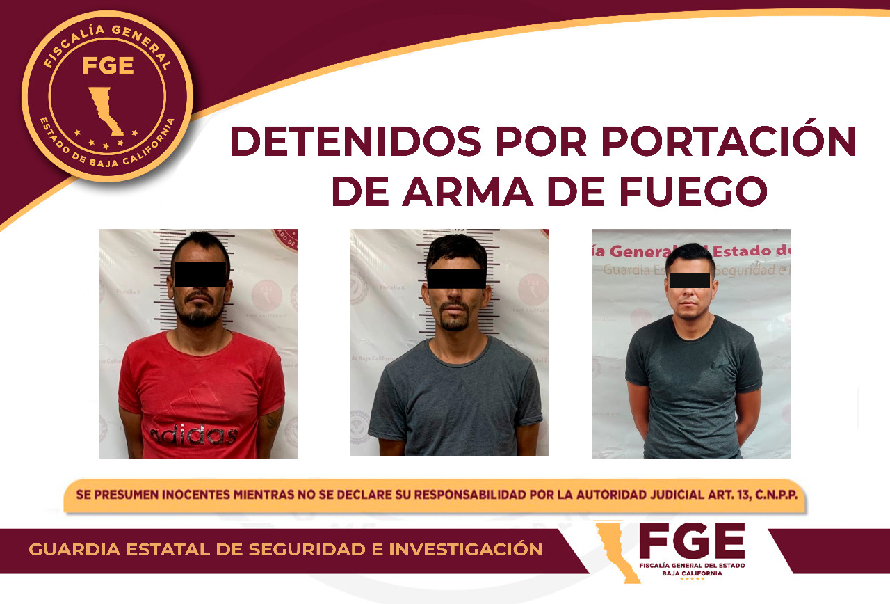 Elementos de la Fiscalía General del Estado (FGE), aseguró a tres sujetos en poder de armas de fuego así como varios cartuchos útiles.