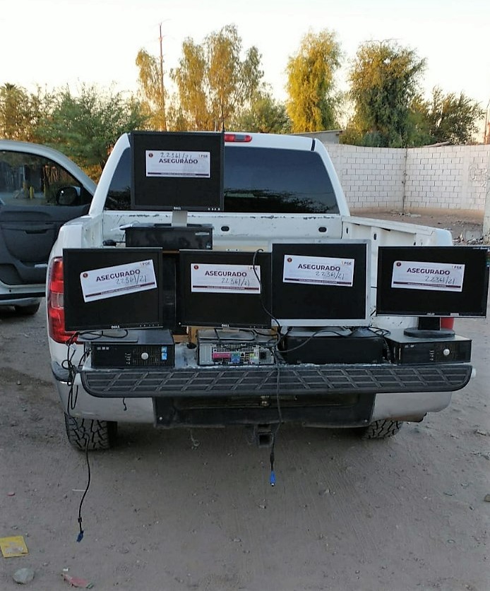 La primera diligencia judicial se llevó a cabo en el domicilio ubicado en calle Universo esquina con Capricornio en la colonia San Clemente, en donde se decomisaron cinco computadoras utilizadas como máquinas tragamonedas de apuestas tipo casino.
