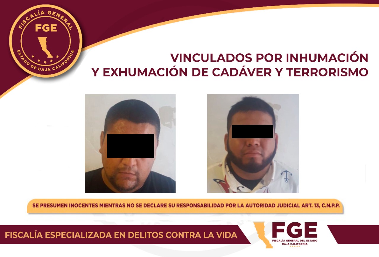 La Fiscalía General del Estado, logró que fueran vinculados a proceso penal, dos sujetos acusados por los delitos de inhumación y exhumación de cadáver y terrorismo.