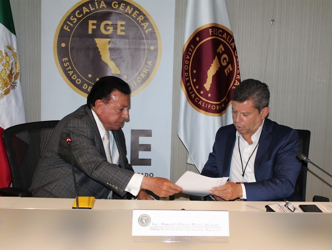 La Fiscalía General del Estado y el Instituto Nacional de Migración buscan establecer acciones para fortalecer el intercambio de información de personas extranjeras que visiten o se establezcan en Baja California.