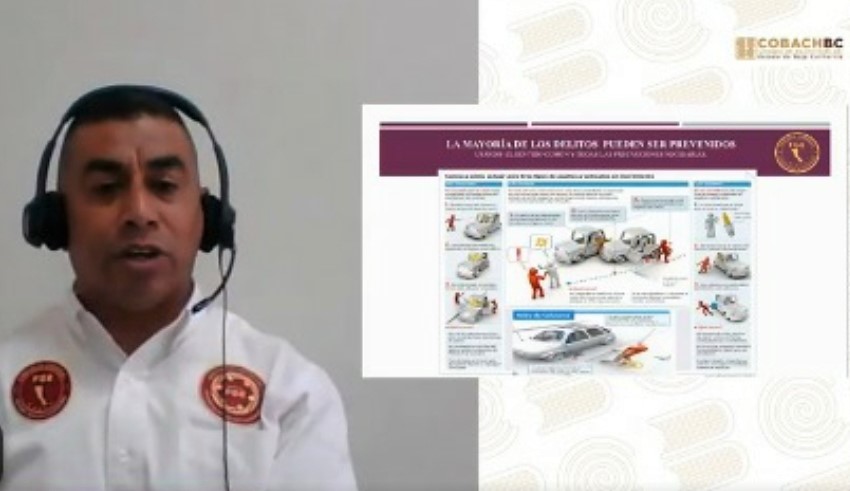 La Fiscalía General del Estado (FGE), a través de personal de la Dirección de Prevención Ciudadana del Delito y la Violencia, impartió la capacitación ''Medidas Generales de Prevención del Delito”, a 557 docentes del Colegio de Bachilleres de Baja California de los planteles de los 6 municipios.