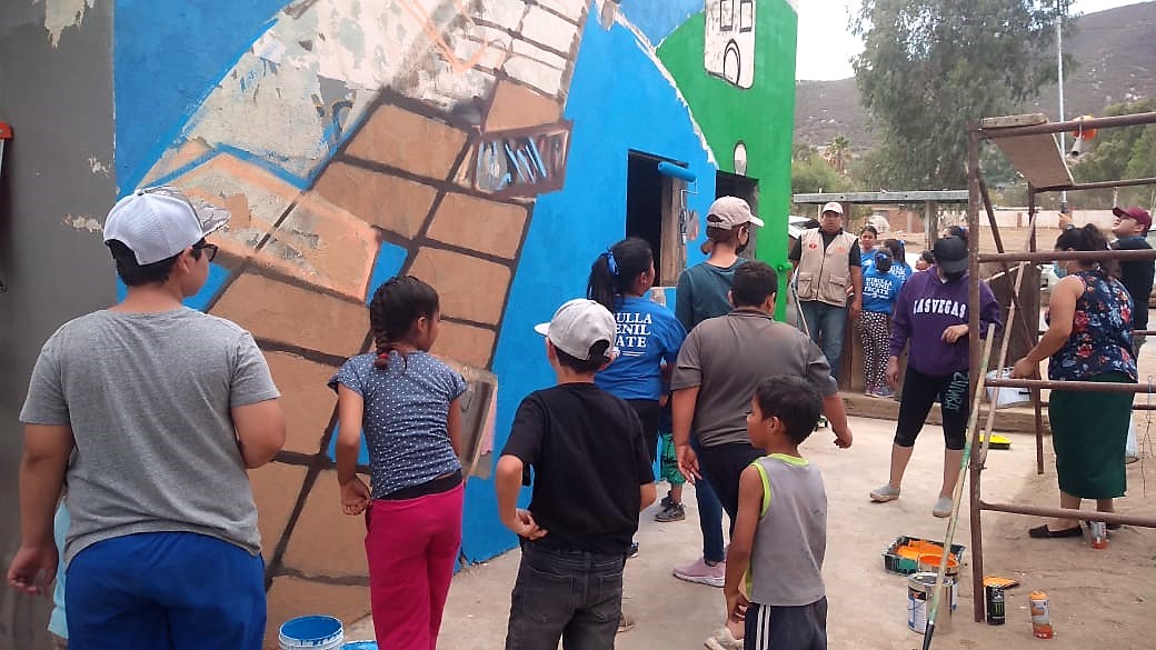 Durante la jornada de recuperación de espacios públicos, se realizó el mural con la participación de la Red ciudadana, personal de la Delegación rural del Ejido Nueva Hindú, patrulla juvenil y el personal de intervención social preventiva de la Fiscalía, atendiendo las instrucciones de apoyo a la comunidad, por parte del Fiscal General del Estado, Juan Guillermo Ruiz Hernández.