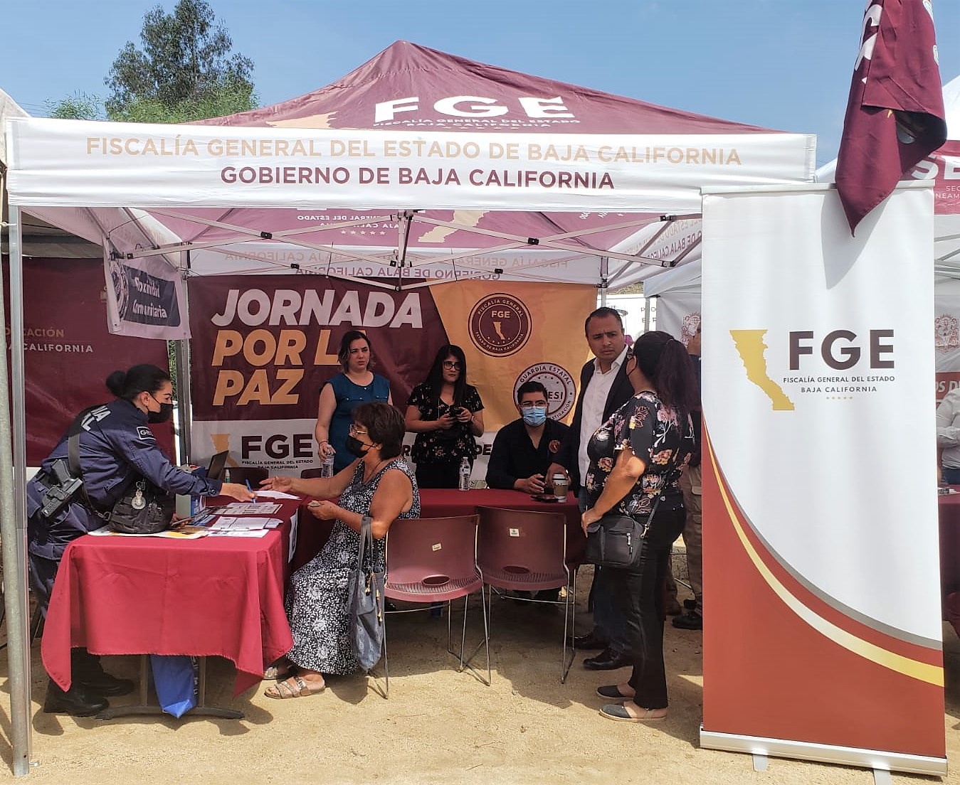 En el evento la FGE instaló módulos donde el personal de la institución brindó orientación jurídica, atendió denuncias e informó sobre programas preventivos del delito y el funcionamiento de los aplicativos “911moviobc” y “089movilbc”.