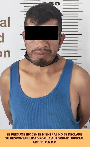 Oficiales adscritos a la Unidad K9 de la Guardia Estatal de Seguridad (GES), intervinieron a ALDO ANDRÉS N, de 18 años de edad, sobre calle Raúl Ponce, entre Segunda y Tercera.