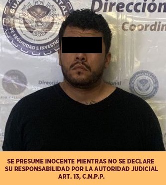 Derivado de labores de investigación y campo, fue ubicado el individuo cuando caminaba sobre la vía pública, ahí fue detenido por elementos de la Guardia Estatal de Seguridad e Investigación (GESI).