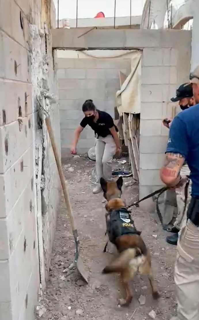 Una vez obtenida la diligencia judicial, el agente del Ministerio Público con apoyo del personal de Servicios Periciales y la Unidad Canina de la Guardia Estatal de Seguridad e Investigación, acudieron al domicilio ubicado en avenida Longeles del fraccionamiento Valle de las Misiones, con la finalidad de buscar indicios que lleven a la localización de una persona que se encuentra desaparecida, obteniendo resultados positivos.