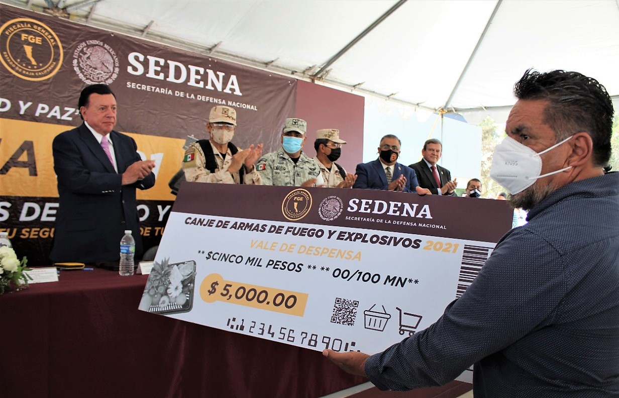 Los canjes de armas de fuego o explosivos por vales de despensas, se pueden realizar en la Segunda Zona Militar ubicada en avenida Ramos Millán 1875 de la colonia Morelos; 28 Batallón de Infantería que se encuentra sobre la carretera libre Tijuana-Playas de Rosarito del Aguje de la Tuna; y en los módulos instalados en las jornadas de la “Semana de Seguridad y Paz” de la Secretaría de la Defensa Nacional.