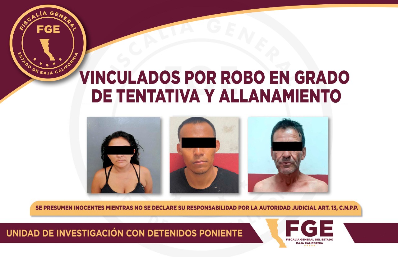 La Fiscalía Regional de Mexicali a través de la Unidad de Investigación de Delitos con detenidos Poniente, logró vincular a tres personas relacionadas en diferentes delitos.