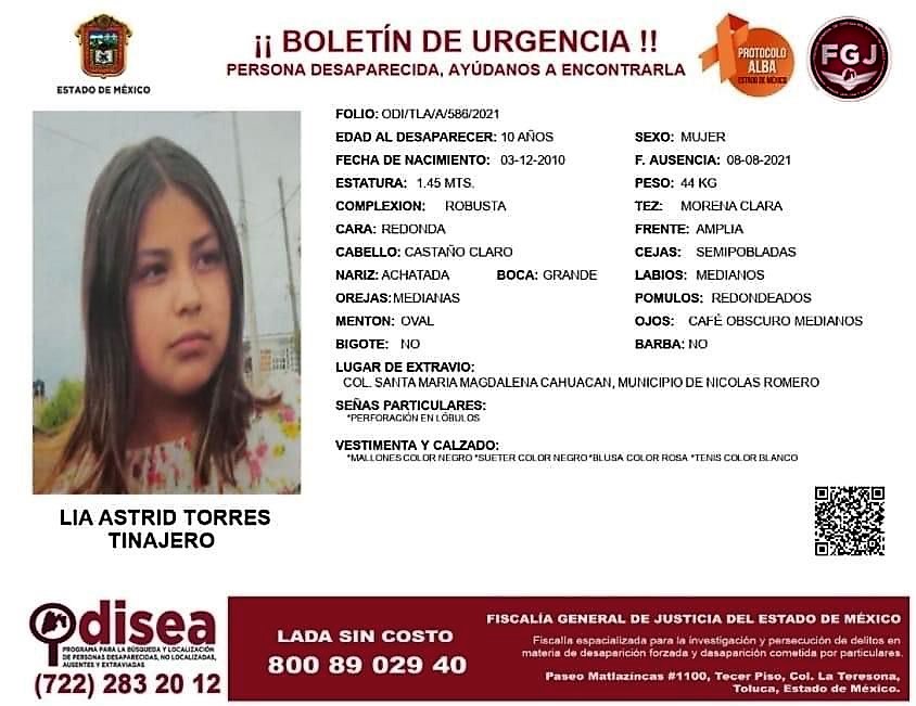 De acuerdo con la información proporcionada, la menor LIA ASTRID TORRES TINACHERO de 10 años llegó con una señora que vende tamales por la avenida De las Haciendas s/n en el fraccionamiento Residencial Barcelona, a solicitarle un teléfono celular para comunicarse con su madre que se encontraba en la Ciudad México, por lo que la ciudadana reportó a la línea de emergencia.