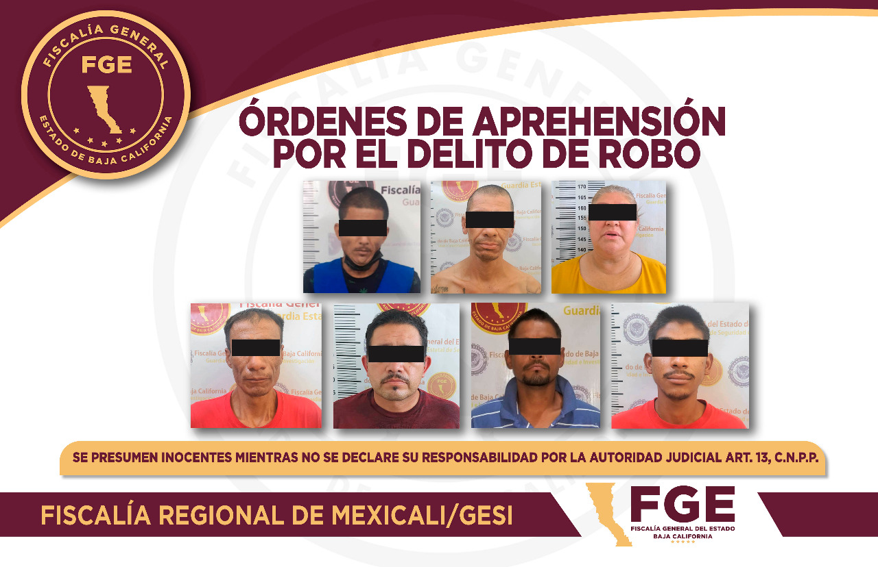 Elementos de la Fiscalía Regional de Mexicali a través de agentes de la Guardia Estatal de Seguridad e Investigación (GESI) cumplimentó 7 órdenes de aprehensión por del delito de robo.