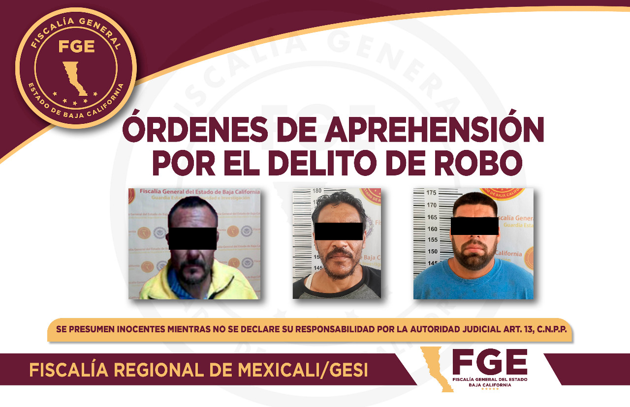 Elementos de la Fiscalía General del Estado (FGE), cumplimentaron órdenes de aprehensión en contra de tres acusados de robos con violencia, cometidos en la zona poniente de la ciudad.